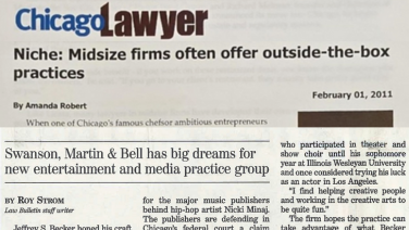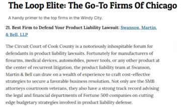 Known nationally for its extensive jury trial experience, Swanson, Martin & Bell, LLP has earned a reputation for excellence in handling complex commercial, equitable, and casualty disputes. Its attorneys have tried hundreds of cases to verdict, and the firm is trusted by Fortune 500 companies, major institutions, and clients across the country.